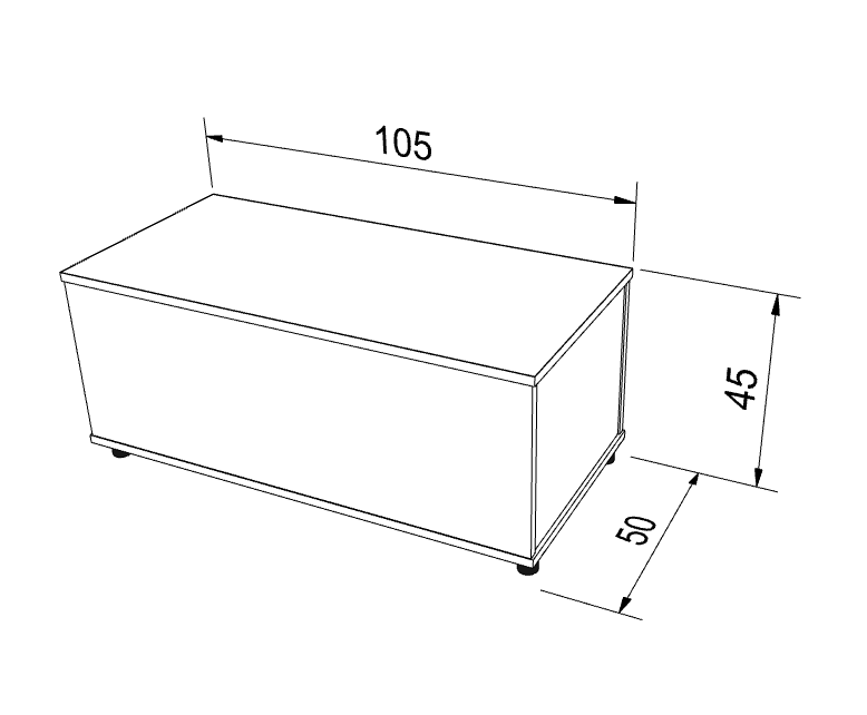Aporta funcionalidad y estilo a tu hogar con este baúl de melamina, perfecto para mantener el orden sin perder elegancia. Con unas dimensiones de 105 cm de ancho, 45 cm de alto y 50 cm de profundidad, ofrece un amplio espacio de almacenamiento ideal para ropa de cama, juguetes, calzado u objetos varios.