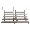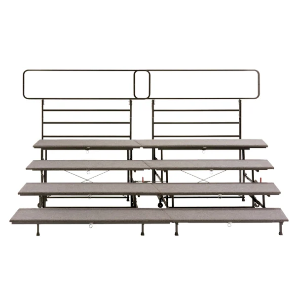 Las tarimas de 3 niveles ocupan menos profundidad y sus tarimas superiores tienen sólo 24″ (60.9 cm) de altura, lo que las convierte en una opción segura e inteligente para grupos pequeños o medianos o para niños pequeños. Cuando tenga que acomodar a un grupo más grande o al instalar tarimas en áreas confinadas, la unidad de 4 escalones cuenta con un nivel superior de 32″ (81.3 cm), lo cual aumenta su capacidad total.