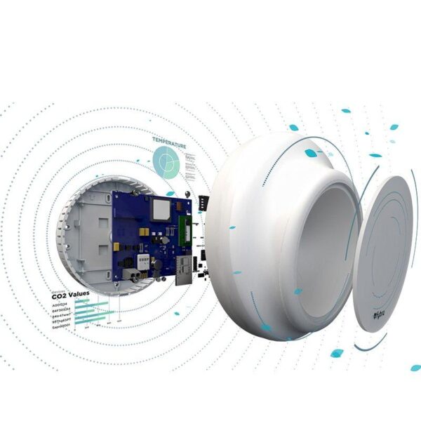 El dispositivo se instala en un minuto y aprende automáticamente el comportamiento de los contaminantes interiores, lo que permite predecir su tendencia en el tiempo.