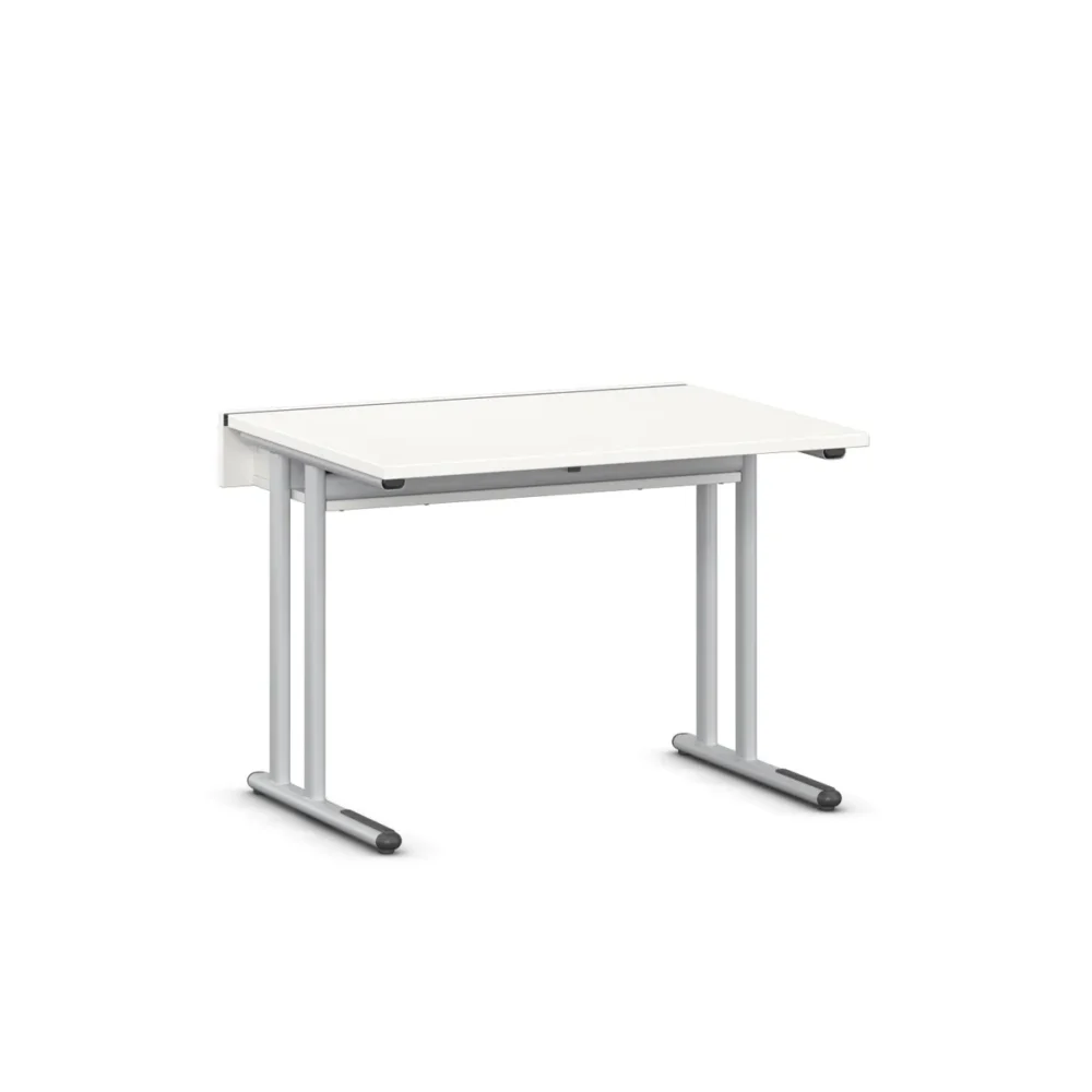 El tablero de la mesa está compuesto de aglomerado revestido con resina de melamina, asegurando resistencia a los impactos y un acabado de alta calidad. El borde del tablero está protegido con plástico encolado, lo que garantiza una mayor durabilidad y un diseño limpio.