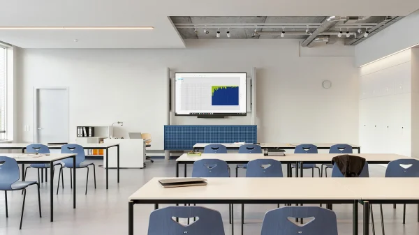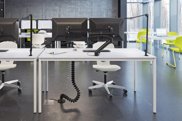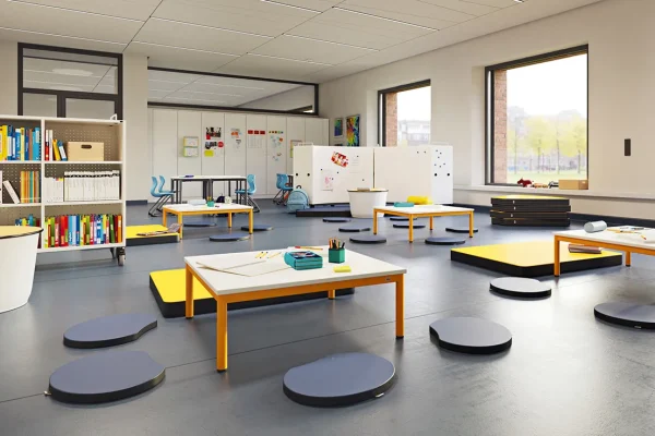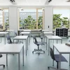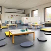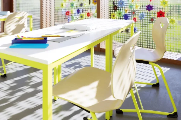 Mesa de grupo sencilla y duradera con diseño de 4 patas.