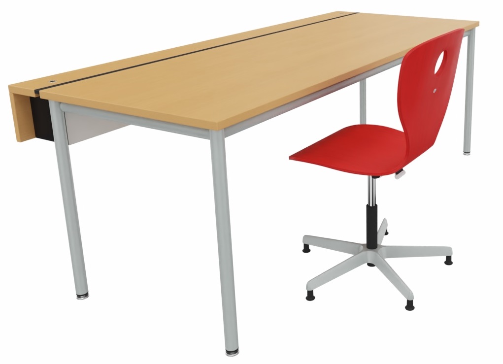 La mesa Network Media está disponible en diferentes medidas para adaptarse al espacio de cada aula. El cajón en el frente le permite mantener su aula de informática ordenada, sin cables a la vista.