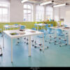 Mesa de grupo sencilla y duradera con diseño de 4 patas.