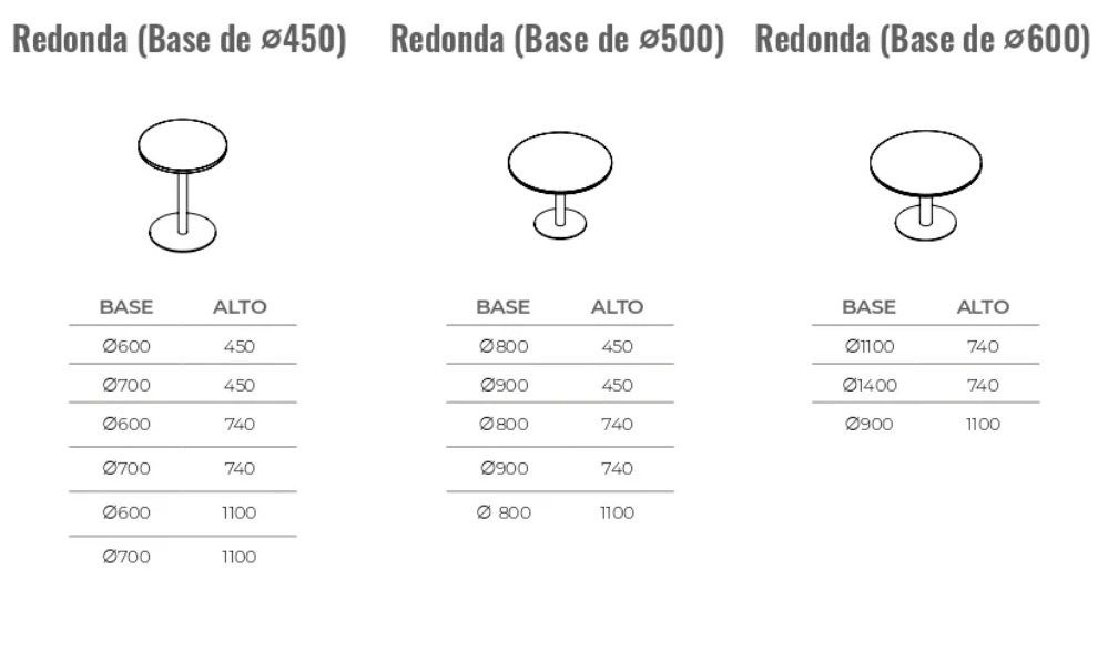 Disponible en tres alturas: 45, 74 y 110 cm