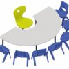 Mesa semicircular forma de U 150x100cm o 180x100cm, ideal para el trabajo en grupo en las aulas de infantil o en comedores.