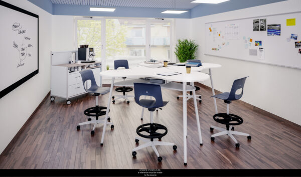 Su altura para trabajar de pie la hace atractiva para una reunión corta, una lluvia de ideas creativa, trabajo en equipo o incluso un pequeño descanso para tomar un café en la sala de profesores.