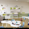 Versión alta de la mesa Puzzle. Divertida y funcional, se crea para entornos colaborativos, ya sea en la escuela o en la oficina. La forma del rompecabezas permite combinar varias mesas (como un rompecabezas) y funciona bien con el Hokki, especialmente para las escuelas primarias.