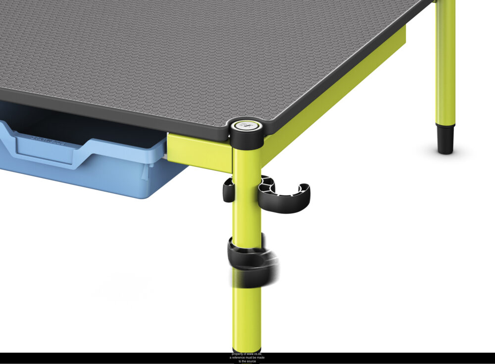 Incorpora el conector Shift+ Up en forma de S, diseñado especialmente para unir mesas, bancos y plataformas de forma segura y estable.
