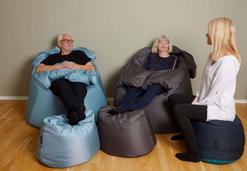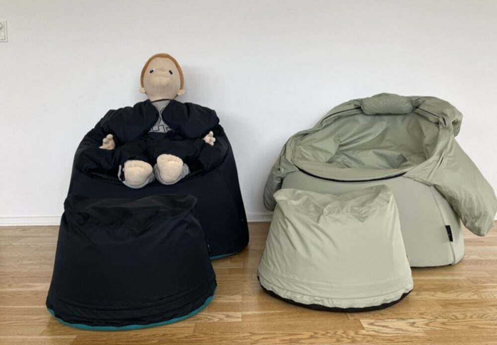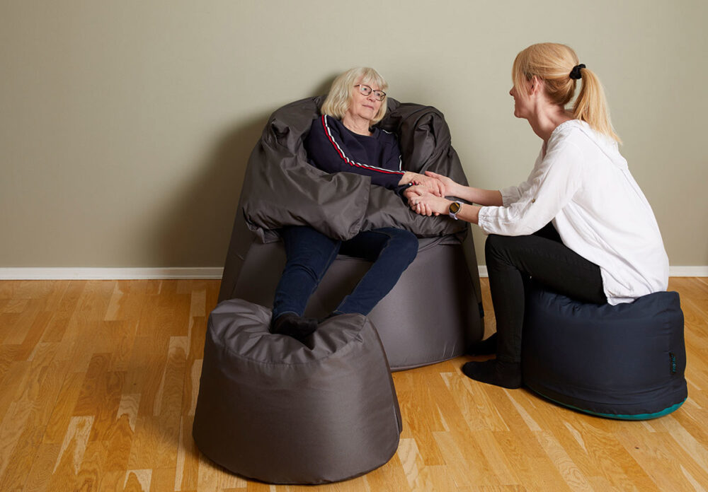 Hay quien le llama «el puf que te abraza» dado que estimula el sistema propioceptivo envolviendo el cuerpo, transmitiendo al usuario sensación de seguridad, protección y bienestar. Proporciona un gran efecto calmante persistente. Indicado para cualquier persona, más aún si presenta inquietud física o mental. Relleno con bolas de plástico en el asiento y los brazos laterales.