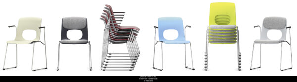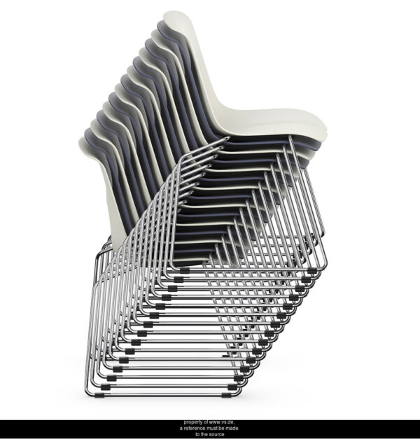 los brazos, cada uno equipado con conector de fila. Se pueden apilar hasta una altura de 9 a 15 unidades según la variante del modelo. - Carcasa de asiento y respaldo fabricada mediante un proceso monosándwich. Fabricada en polipropileno con núcleo duro y contenido de fibra de vidrio.