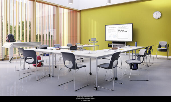 - Estructura de tubo de acero curvado, soldado y cromado (d= 12 mm). Opcionalmente disponible como silla con reposabrazos con soporte de plástico para