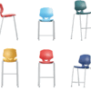 4 alturas fijas para asientos altos temporales en mesas de pie o sentado.
