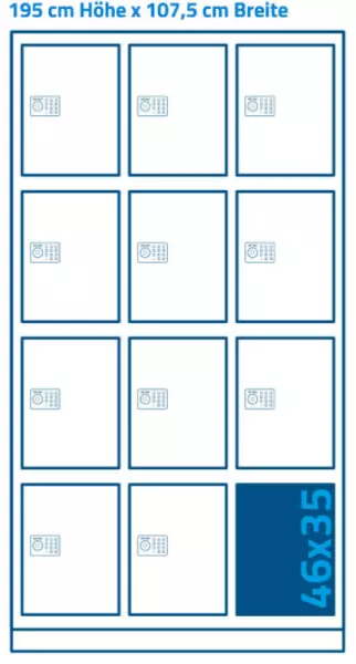 Taquilla – 3 columnas – 12 huecos – 1950x1075x500 mm (AlxAnxPr)