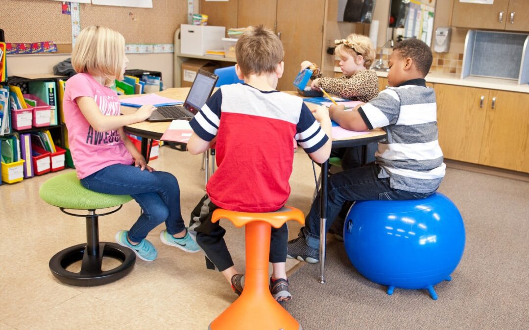 El taburete Hokki fomenta el movimiento constante y tiene numerosos beneficios para la salud de los alumnos